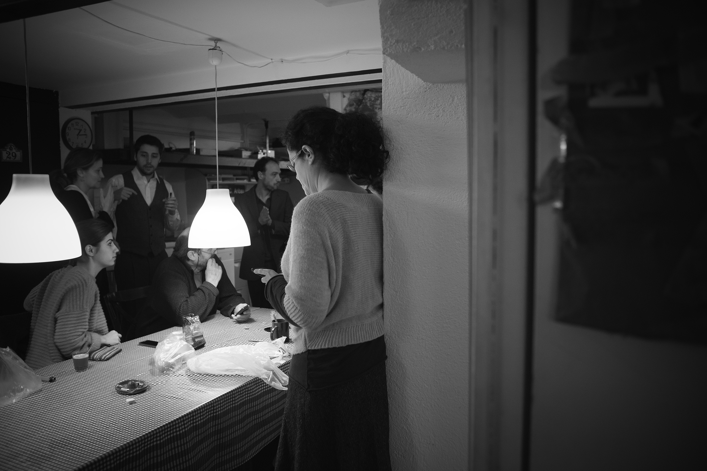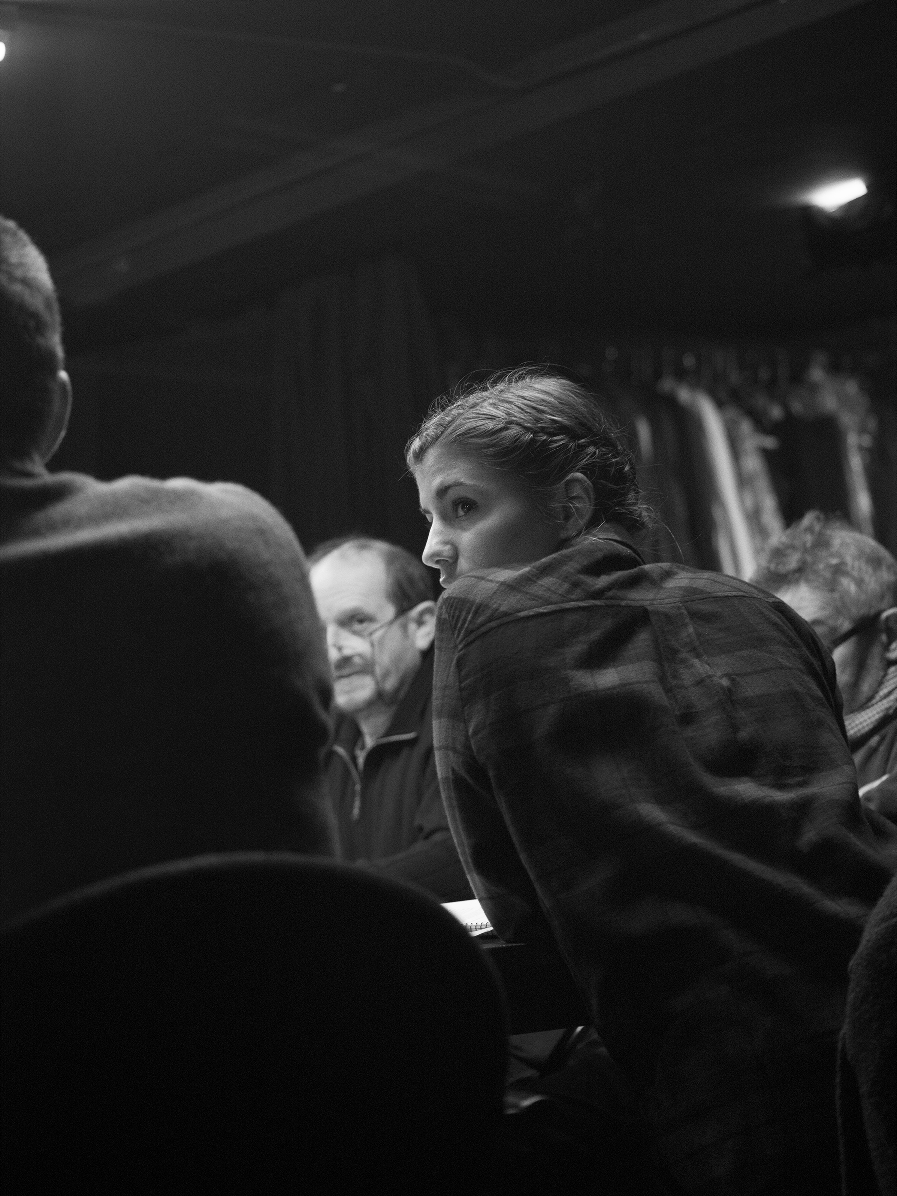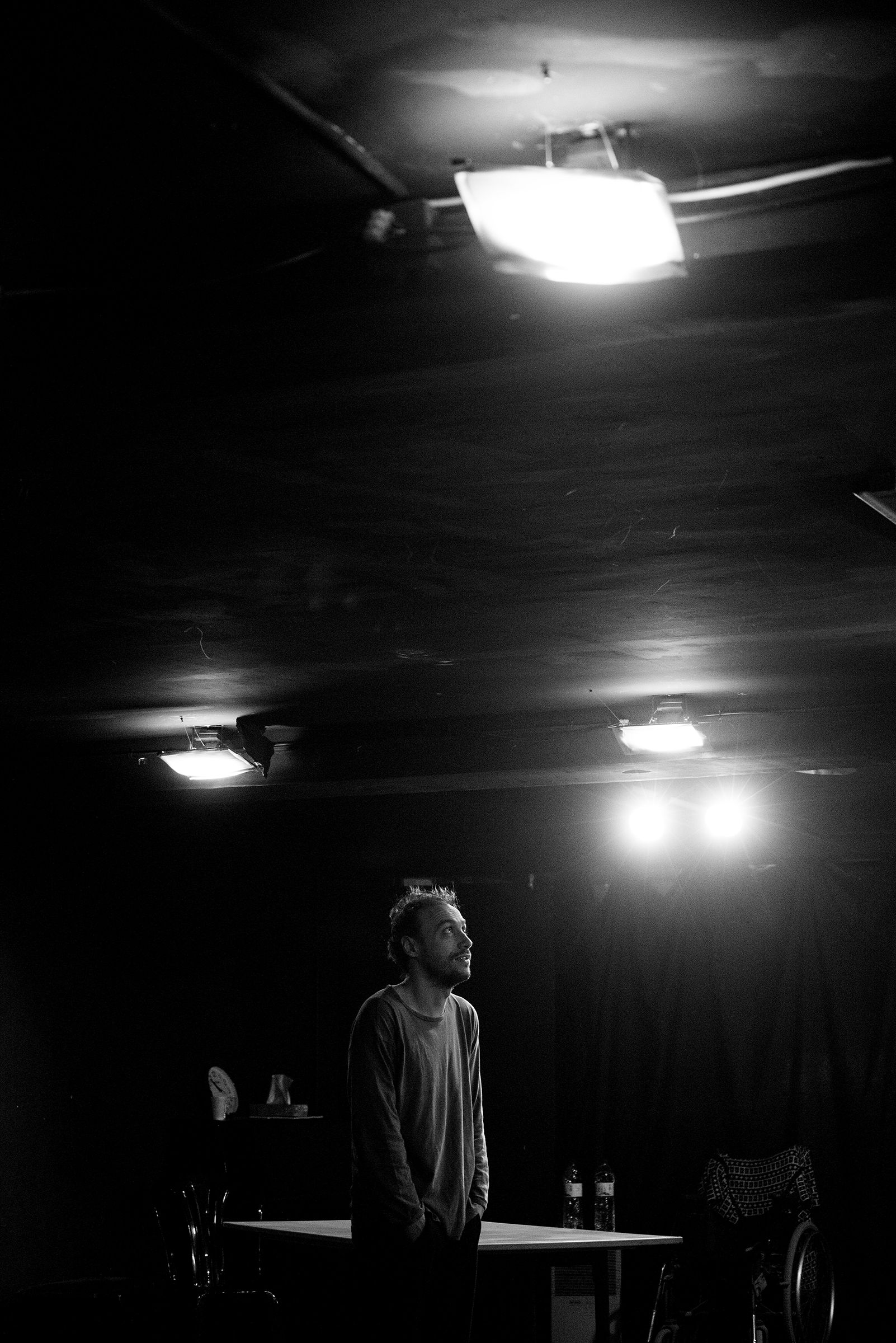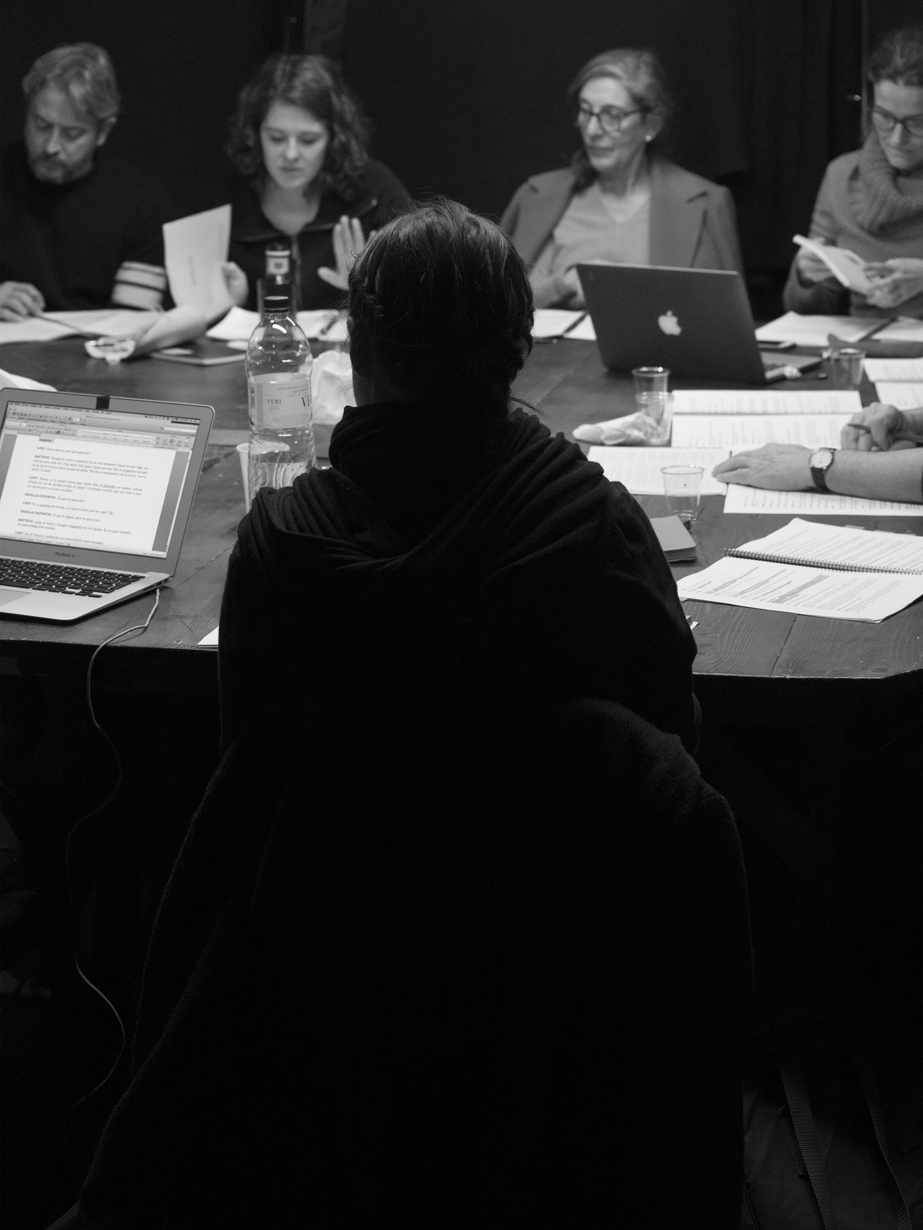 Anava als assajos de divendres, vaig voler crear una rutina. Durant els primers dies tenia por de molestar i m’amagava entre les columnes, darrere les cadires de la sala d’assaig, i em sentia una voyeur. Els deia que buscava fotos del procés que l’espectador no s’imaginaria trobar, de l’entorn de la sala d’assaig, les seves llums de treball, la concentració de l’actor, el passar text, repetir una i una altra vegada la mateixa escena, el director acompanyant a l’actor, l’espera, el mirar de l’equip, els que no es veuen... En definitiva, de què hi ha darrere del procés d’assaig, i què passa minuts abans de començar. De mica en mica ells es van acostumar a la meva presència fins que un dia vaig tenir la sensació de ser invisible, era una més dins de tot aquell engranatge i em movia amb total llibertat. Només per això ja estic profundament agraïda.