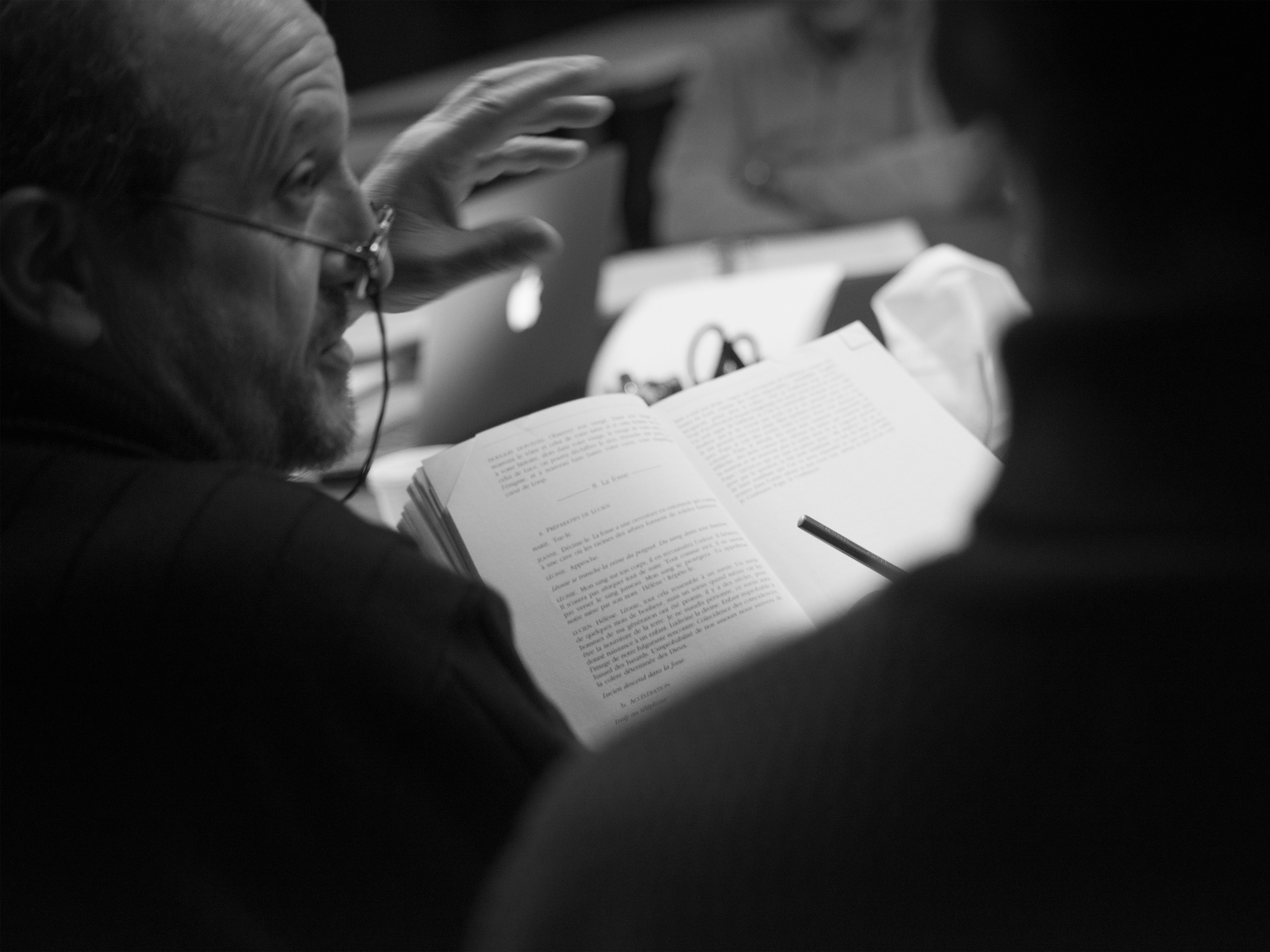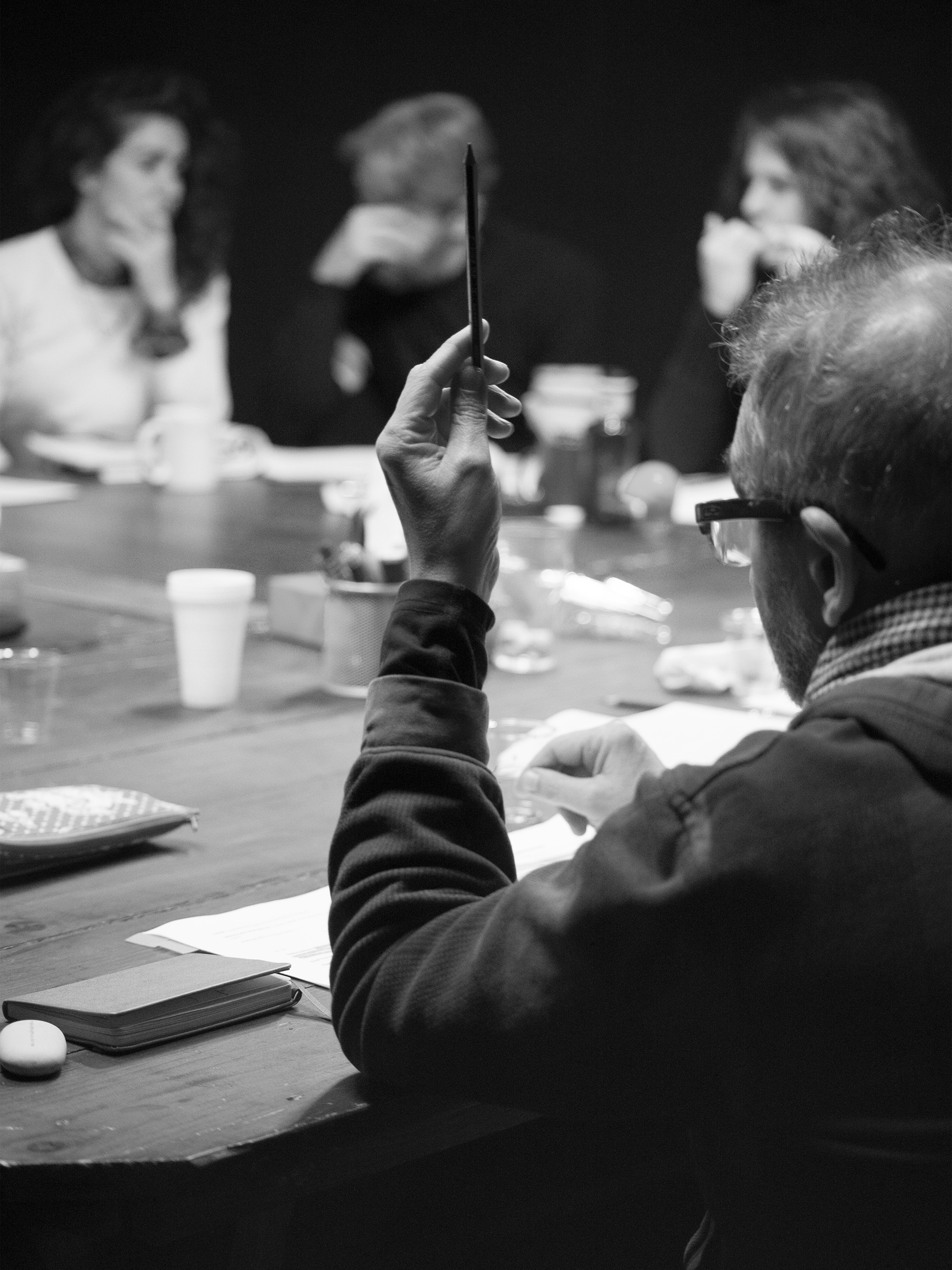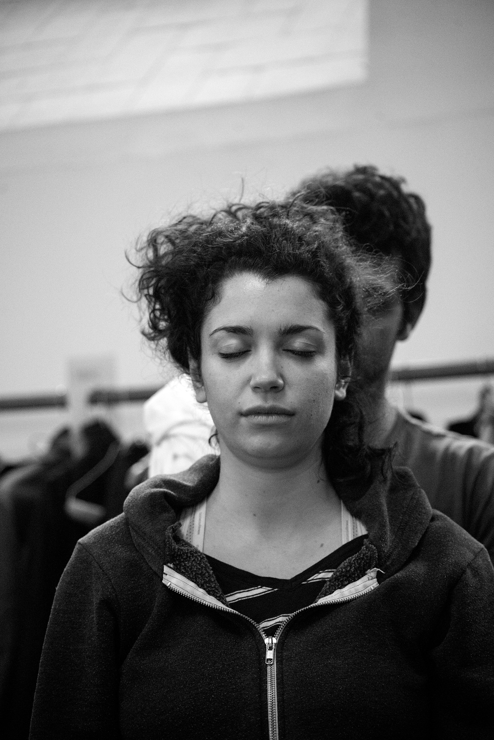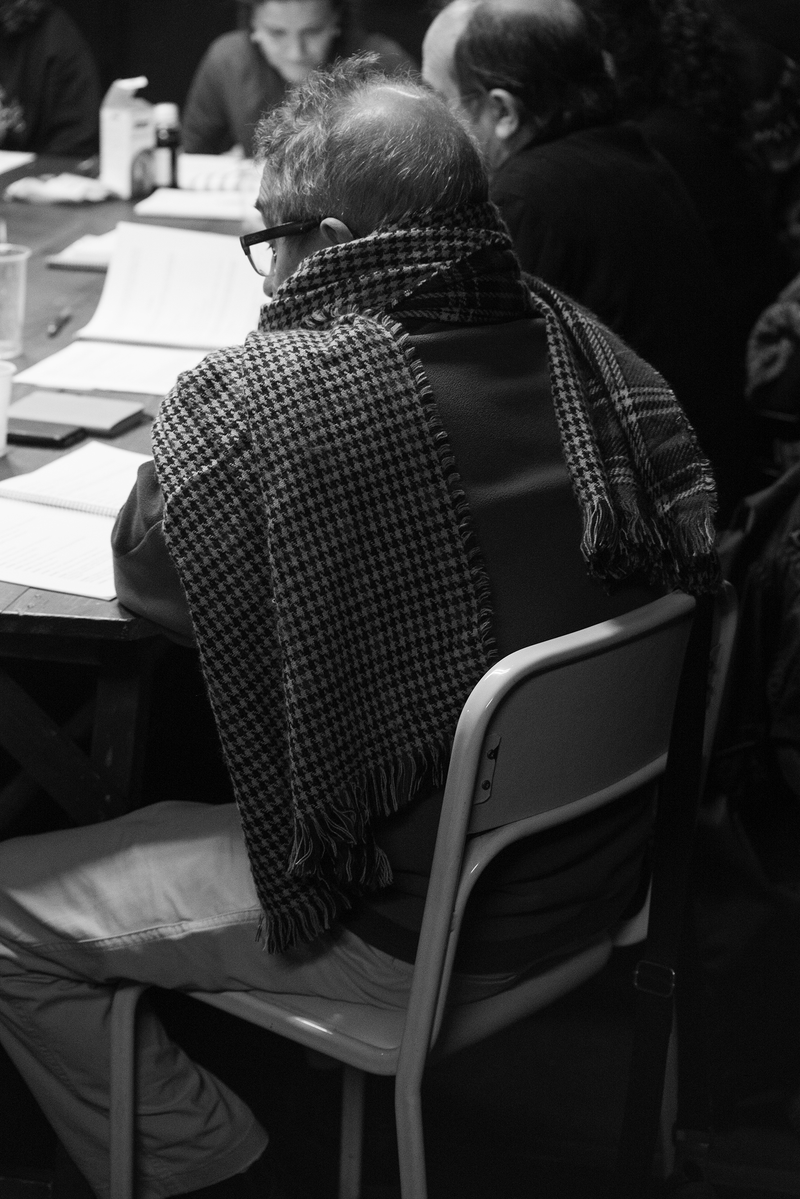 Anava als assajos de divendres, vaig voler crear una rutina. Durant els primers dies tenia por de molestar i m’amagava entre les columnes, darrere les cadires de la sala d’assaig, i em sentia una voyeur. Els deia que buscava fotos del procés que l’espectador no s’imaginaria trobar, de l’entorn de la sala d’assaig, les seves llums de treball, la concentració de l’actor, el passar text, repetir una i una altra vegada la mateixa escena, el director acompanyant a l’actor, l’espera, el mirar de l’equip, els que no es veuen... En definitiva, de què hi ha darrere del procés d’assaig, i què passa minuts abans de començar. De mica en mica ells es van acostumar a la meva presència fins que un dia vaig tenir la sensació de ser invisible, era una més dins de tot aquell engranatge i em movia amb total llibertat. Només per això ja estic profundament agraïda.