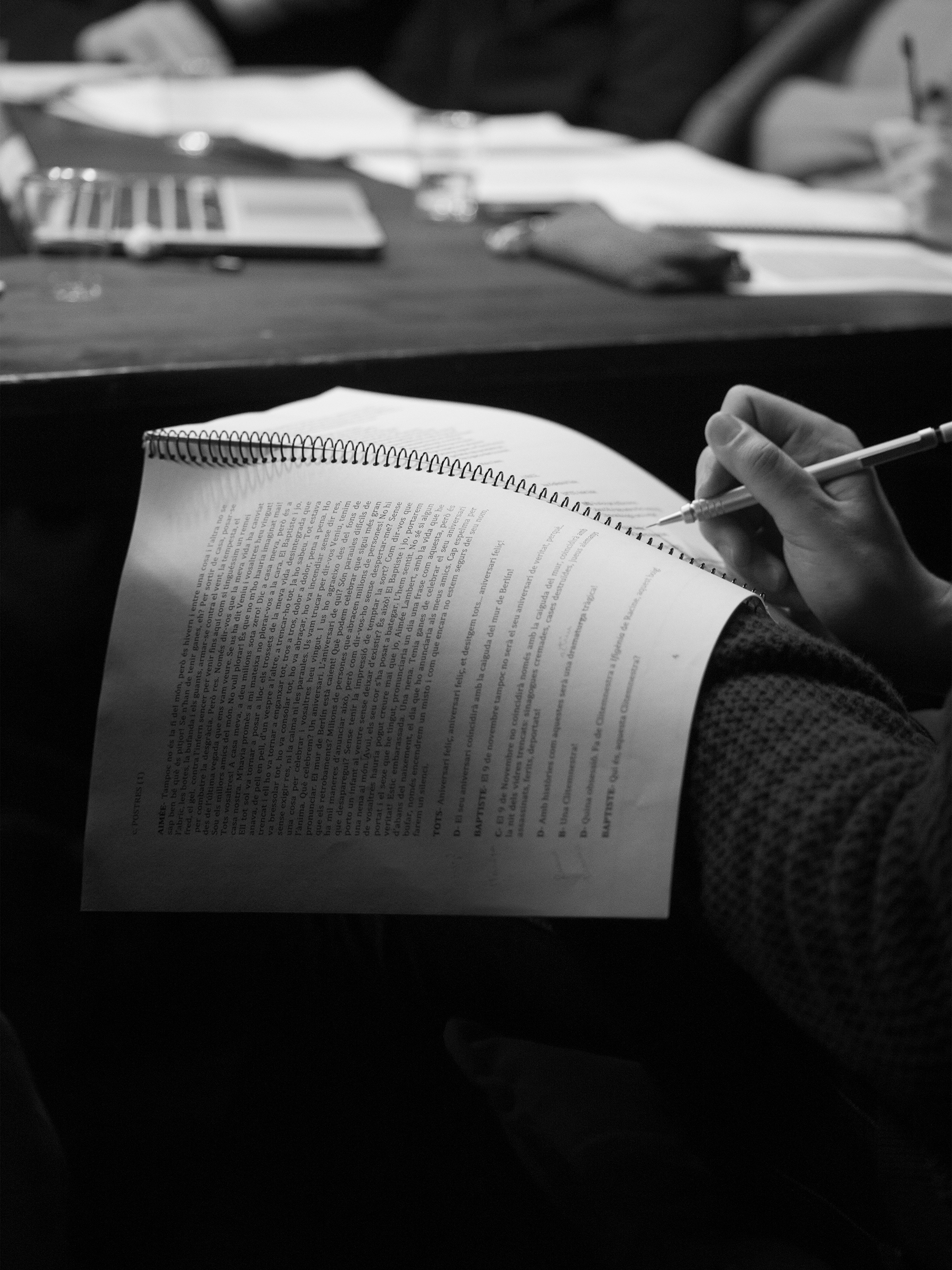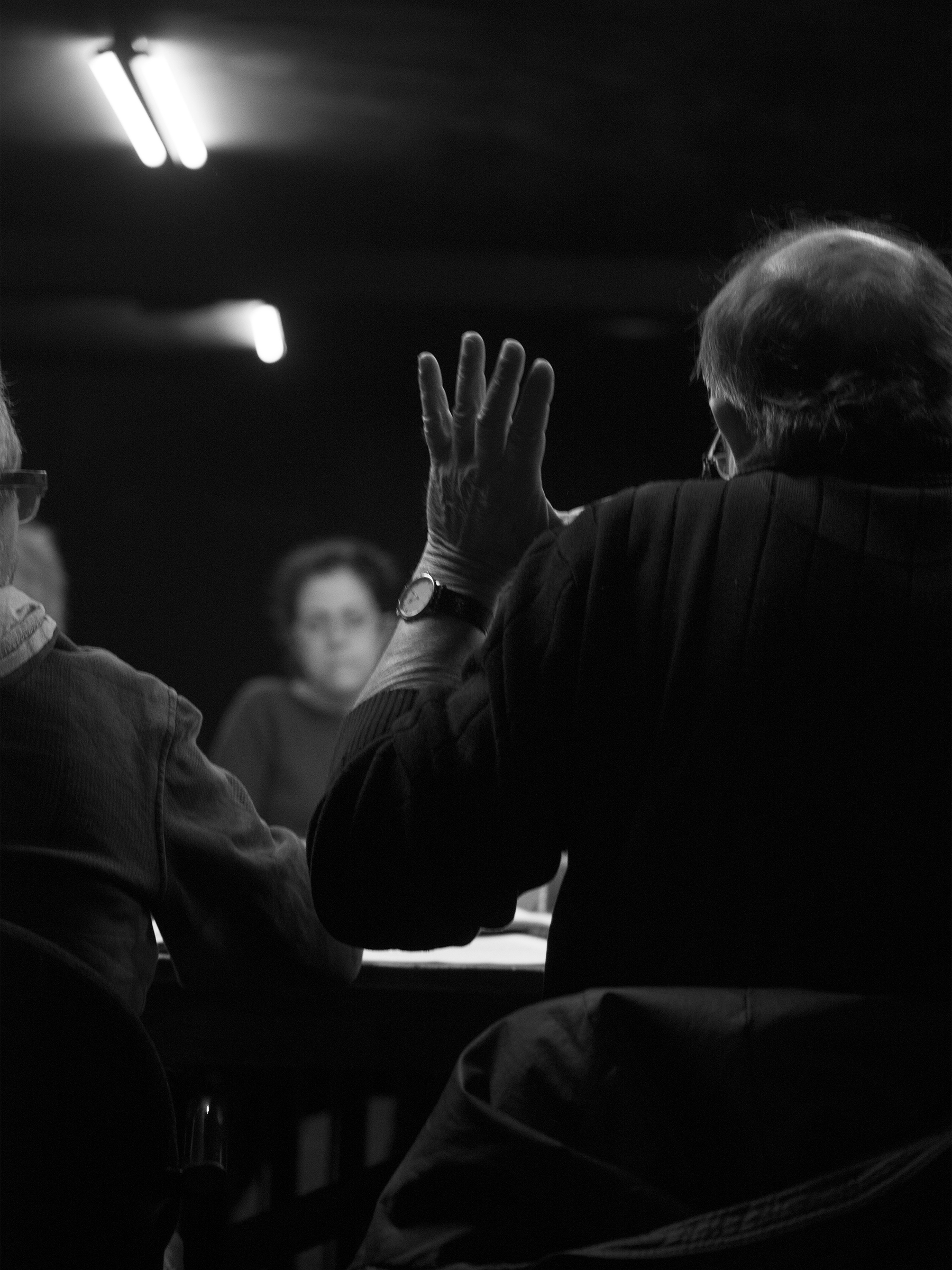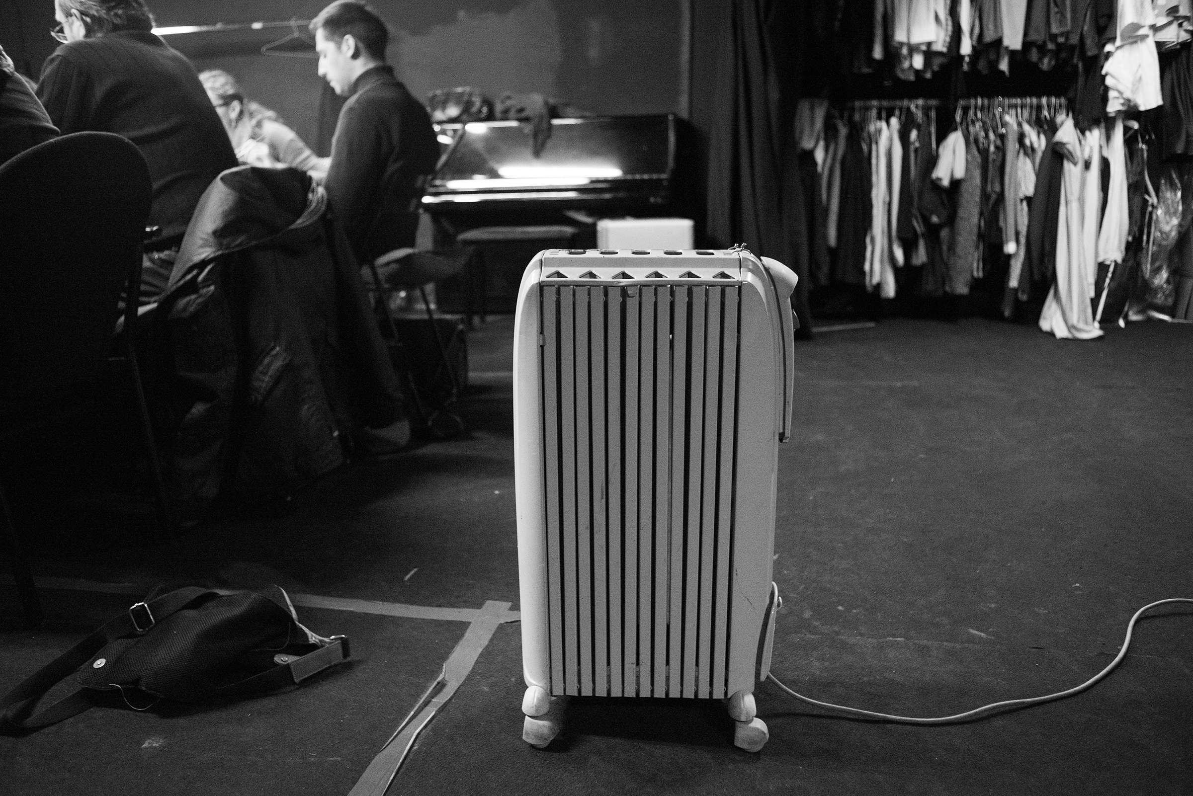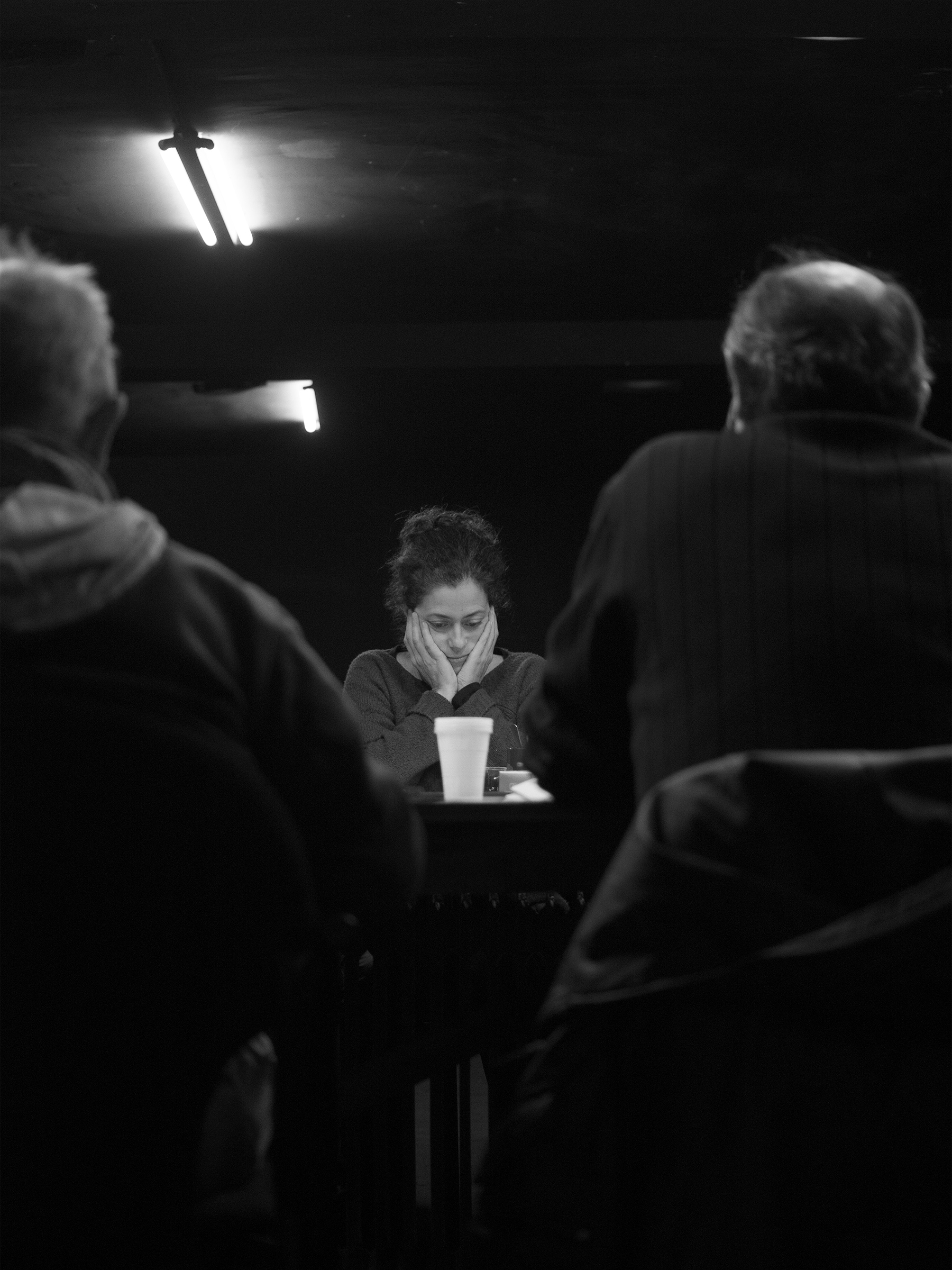 Anava als assajos de divendres, vaig voler crear una rutina. Durant els primers dies tenia por de molestar i m’amagava entre les columnes, darrere les cadires de la sala d’assaig, i em sentia una voyeur. Els deia que buscava fotos del procés que l’espectador no s’imaginaria trobar, de l’entorn de la sala d’assaig, les seves llums de treball, la concentració de l’actor, el passar text, repetir una i una altra vegada la mateixa escena, el director acompanyant a l’actor, l’espera, el mirar de l’equip, els que no es veuen... En definitiva, de què hi ha darrere del procés d’assaig, i què passa minuts abans de començar. De mica en mica ells es van acostumar a la meva presència fins que un dia vaig tenir la sensació de ser invisible, era una més dins de tot aquell engranatge i em movia amb total llibertat. Només per això ja estic profundament agraïda.