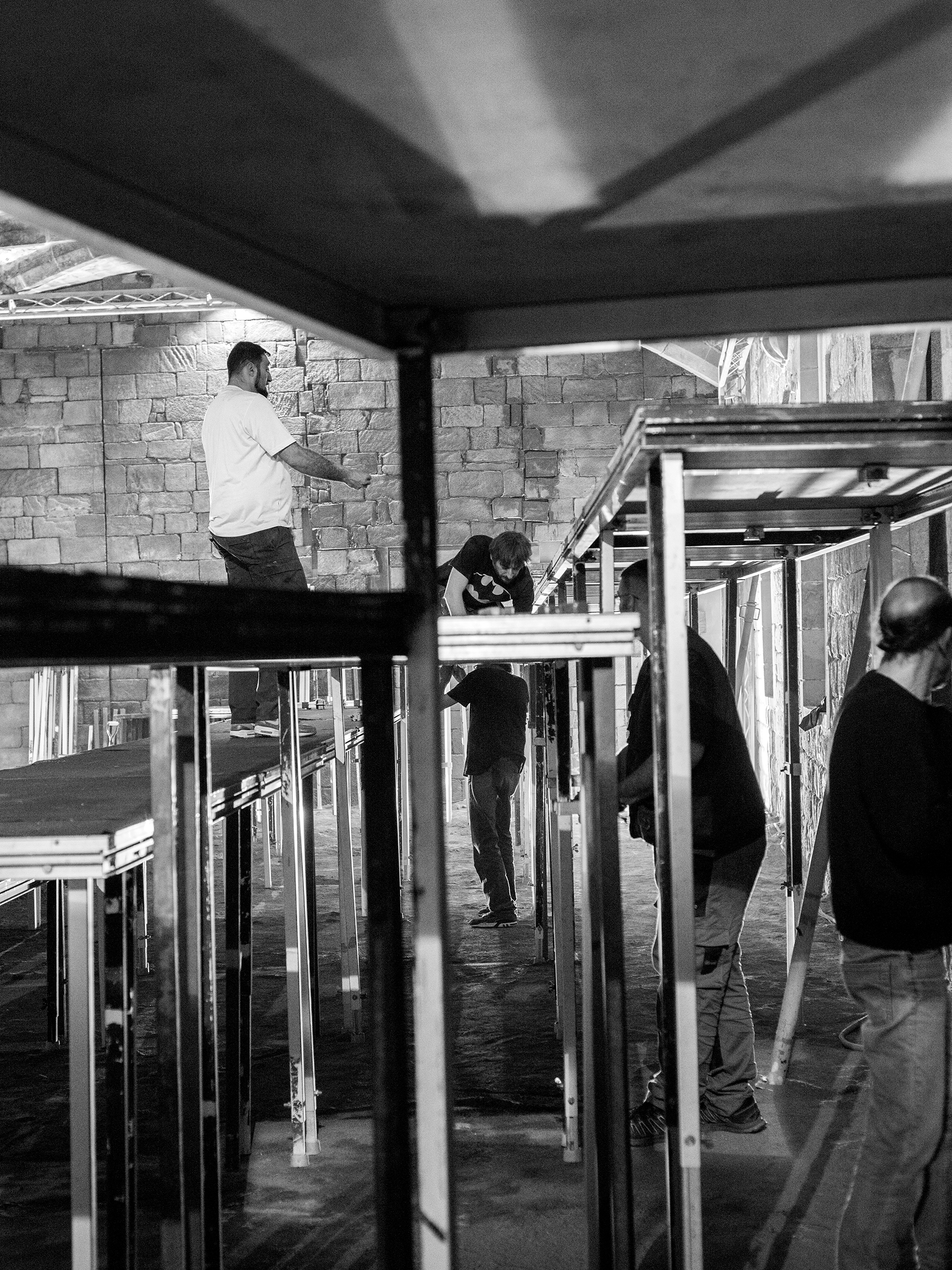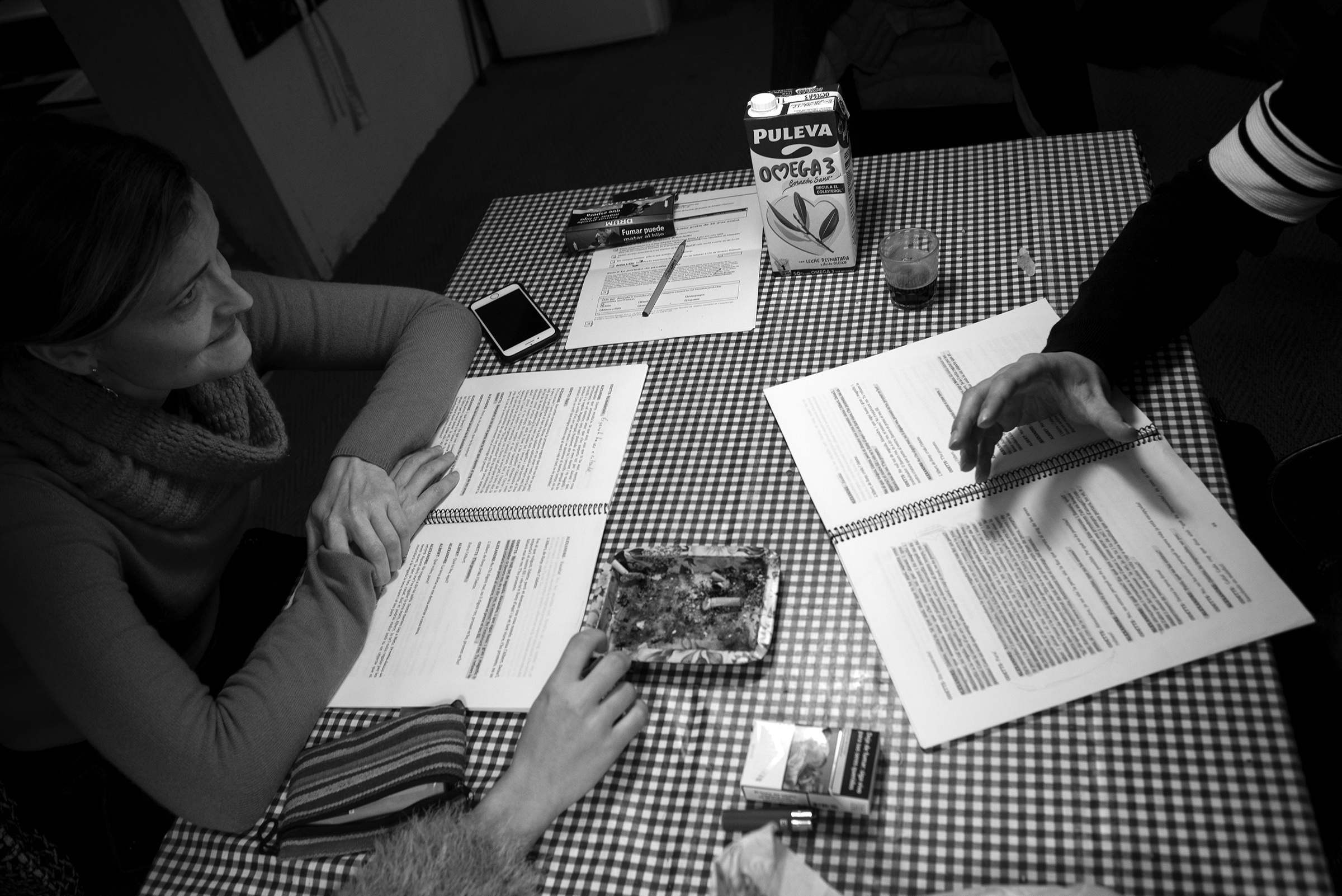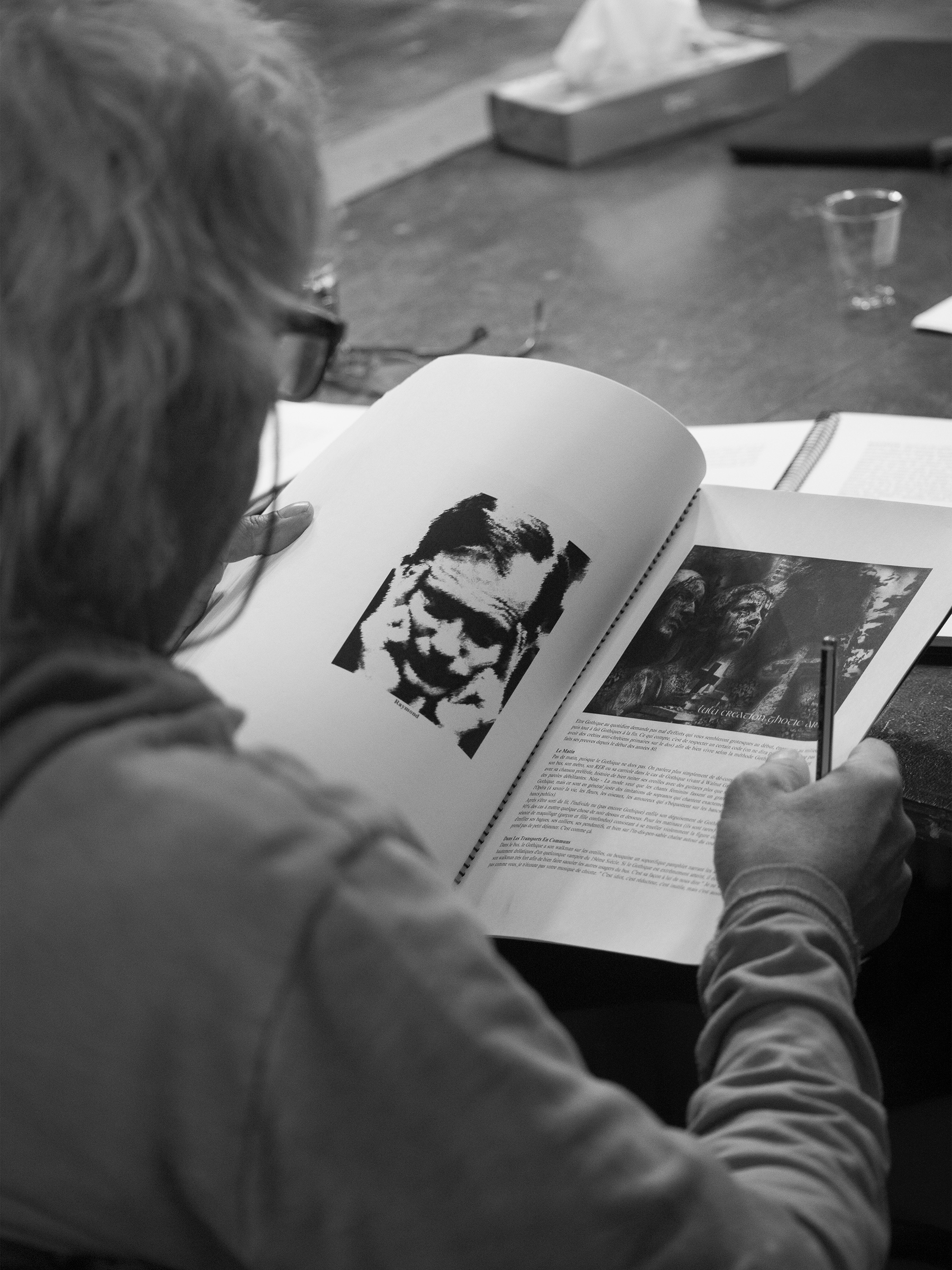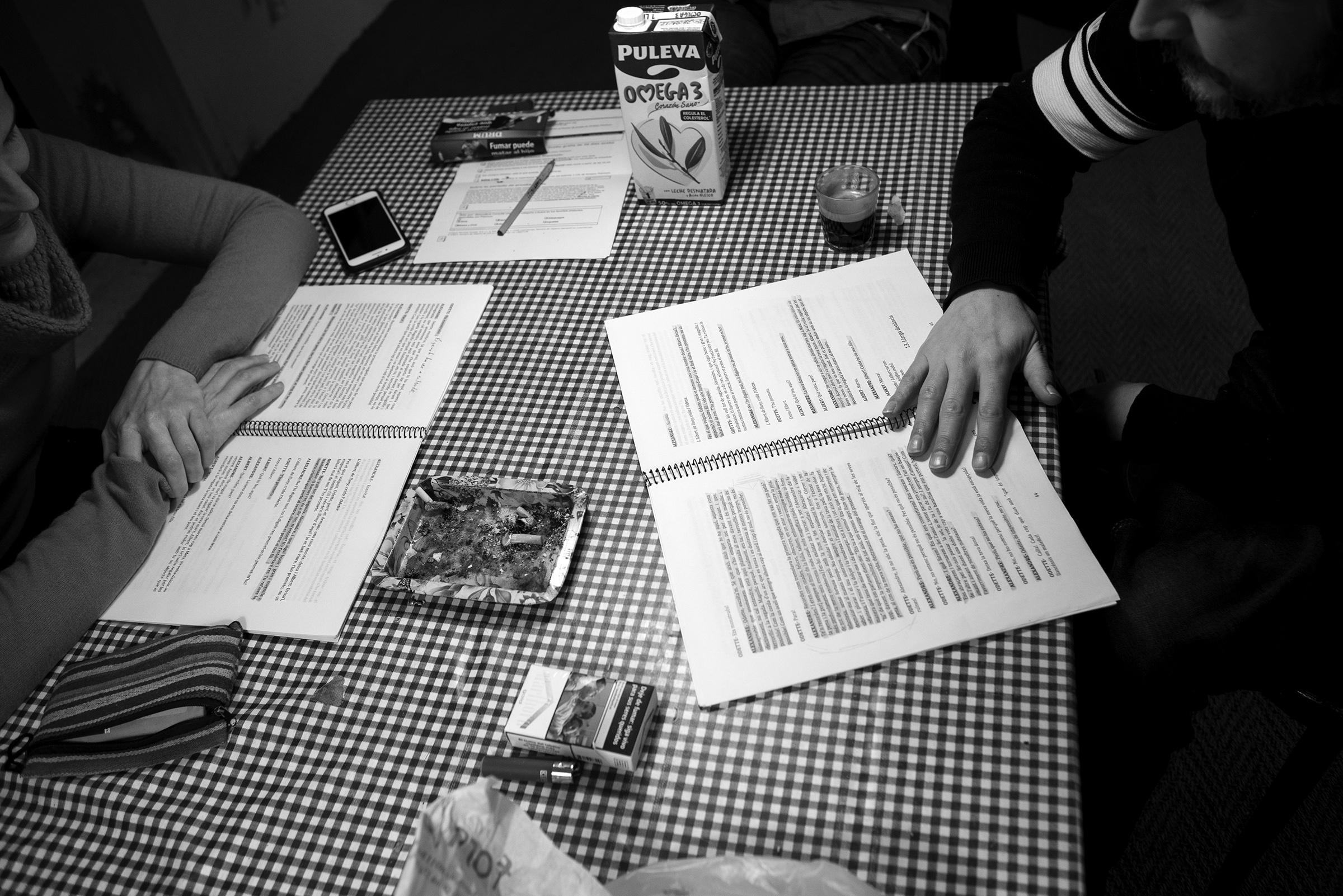 Anava als assajos de divendres, vaig voler crear una rutina. Durant els primers dies tenia por de molestar i m’amagava entre les columnes, darrere les cadires de la sala d’assaig, i em sentia una voyeur. Els deia que buscava fotos del procés que l’espectador no s’imaginaria trobar, de l’entorn de la sala d’assaig, les seves llums de treball, la concentració de l’actor, el passar text, repetir una i una altra vegada la mateixa escena, el director acompanyant a l’actor, l’espera, el mirar de l’equip, els que no es veuen... En definitiva, de què hi ha darrere del procés d’assaig, i què passa minuts abans de començar. De mica en mica ells es van acostumar a la meva presència fins que un dia vaig tenir la sensació de ser invisible, era una més dins de tot aquell engranatge i em movia amb total llibertat. Només per això ja estic profundament agraïda.