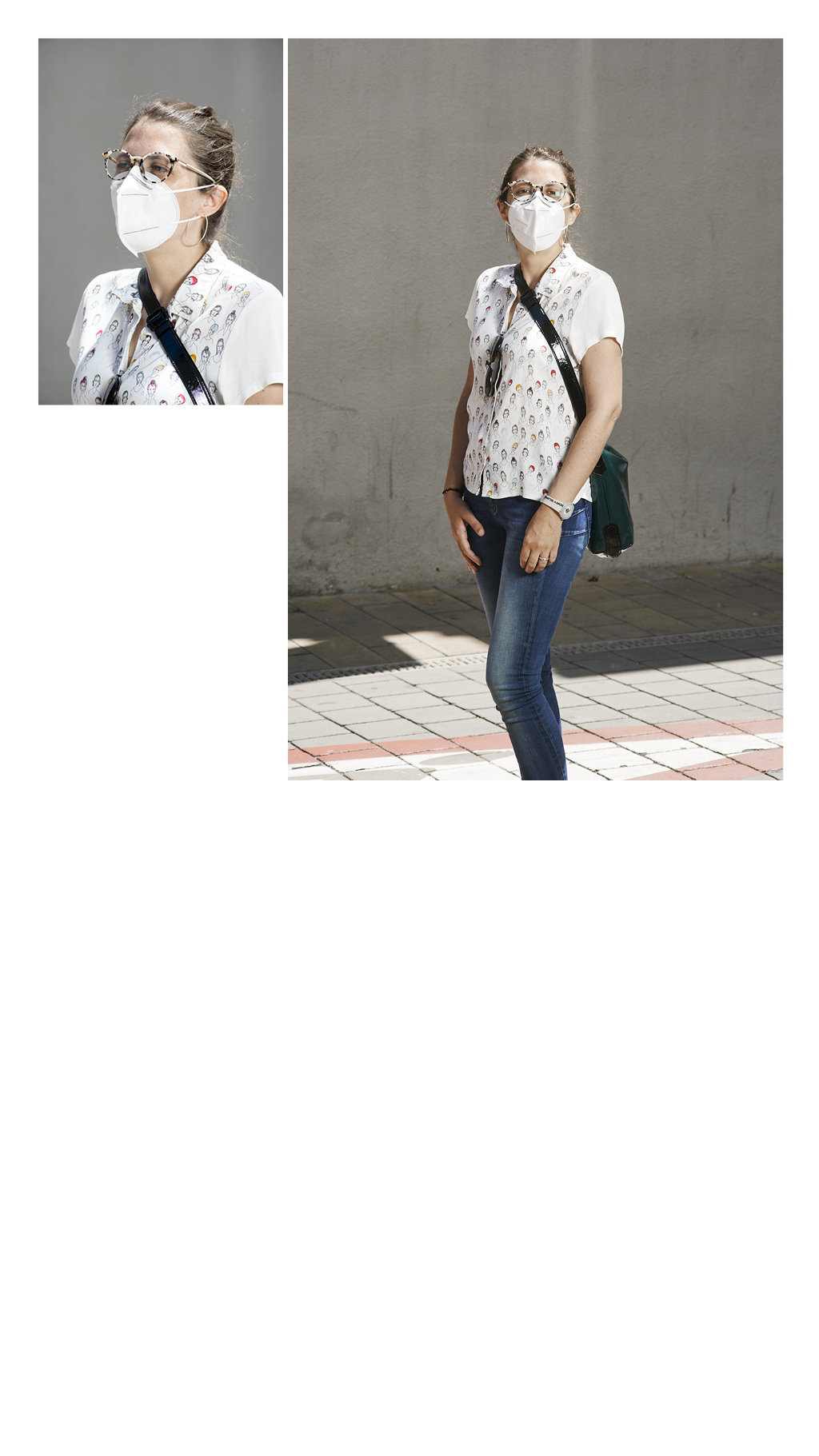 Fotografies realitzades durant els mesos de març, abril i maig del 2020, i que li van servir a la fotògrafa per parlar amb la gent que passava pel seu carrer, durant el confinament.