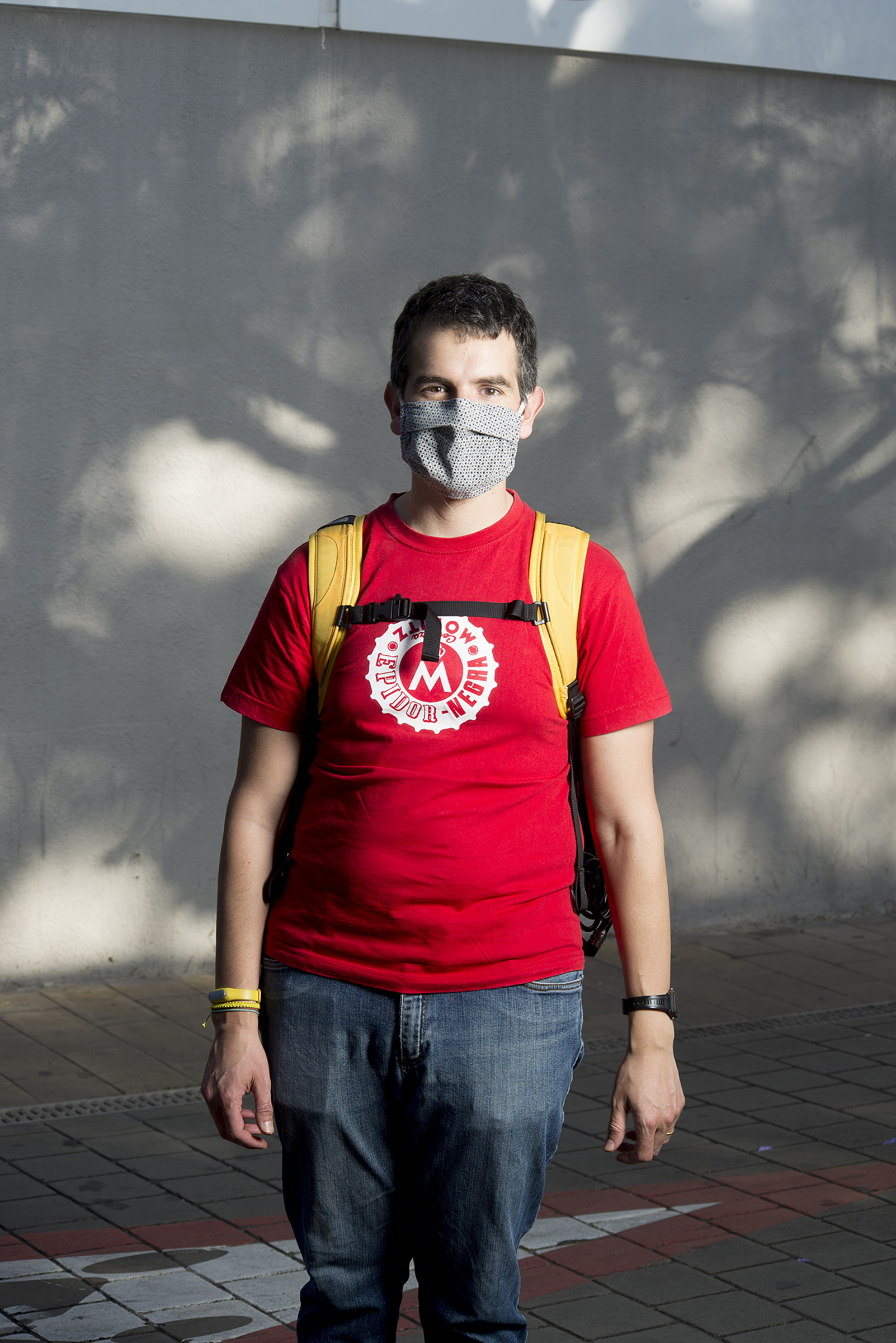 Perdoni! Li puc fer una foto? Sí, sí, a vostè. Per què? Em pregunta que per què? Porto molts dies confinada sola i sóc fotògrafa... I miri... No sé... Li puc fer una foto? Sí!!!! Oh! Miri, posis allà. Una mica més cap a la seva... dr... esquerra. Sí, una mica més, poc... No tant, no tant... Una mica enrere i... Aquí, aquí. No, només miri'm. Serà un segon... sí. (Flash. Flash) Ja està. Moltes gràcies... Ah, sí, miri... Què li sembla? Vol que li passi? Li dono el meu correu i m'escriu... I em diu qui és i quina roba portava, per no enviar-li un altre que no sigui vostè. Sí? Gràcies. Sí, sí, això és un estudi... Tenia sempre la cortina baixada, però amb el confinament... miri... coses que fas. No ho sabia que hi havia un estudi? Bé, no és una botiga de foto... Sóc fotògrafa i treballo en aquest estudi, però no és un botiga... (bla-bla-bla)
